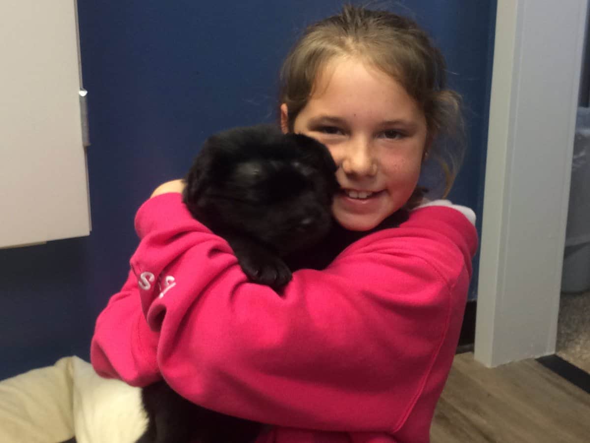 The “winners” of this sweet and very resilient puppy are Carla and her 10-year-old daughter, Kailey, of Rock Hill, S.C. Just last month, the family had to euthanize Kailey’s 15-year-old therapy dog, a Lab named Woodrow who Kailey had grown up with.